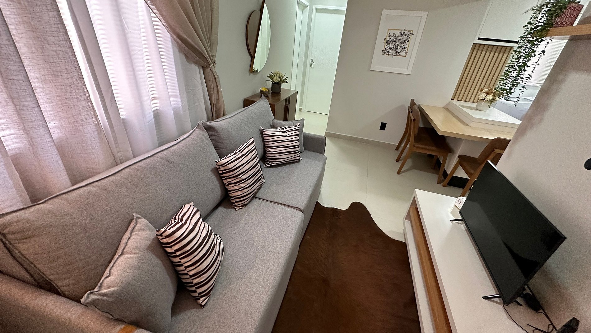 Sala: Sofá cama, Mesa de Jantar, Tv Smart com serviço de stream( usuário não fornecido). Canais locais e de assinaturas disponíveis.