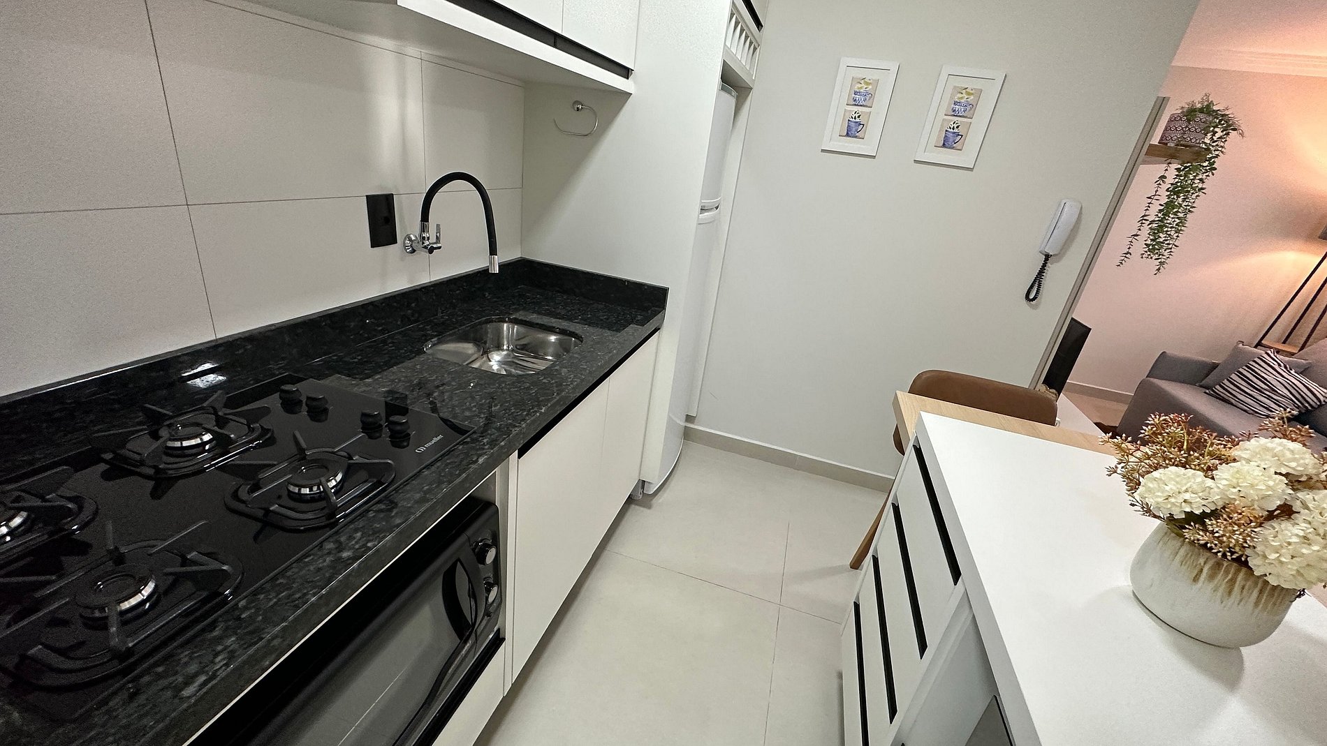 Cozinha equipada para variados tipos de cardápio sendo eles de forma rápidas, ou mais elaboradas, com Fogão com Forno a gás, Geladeira, Cafeteira italiana, microondas