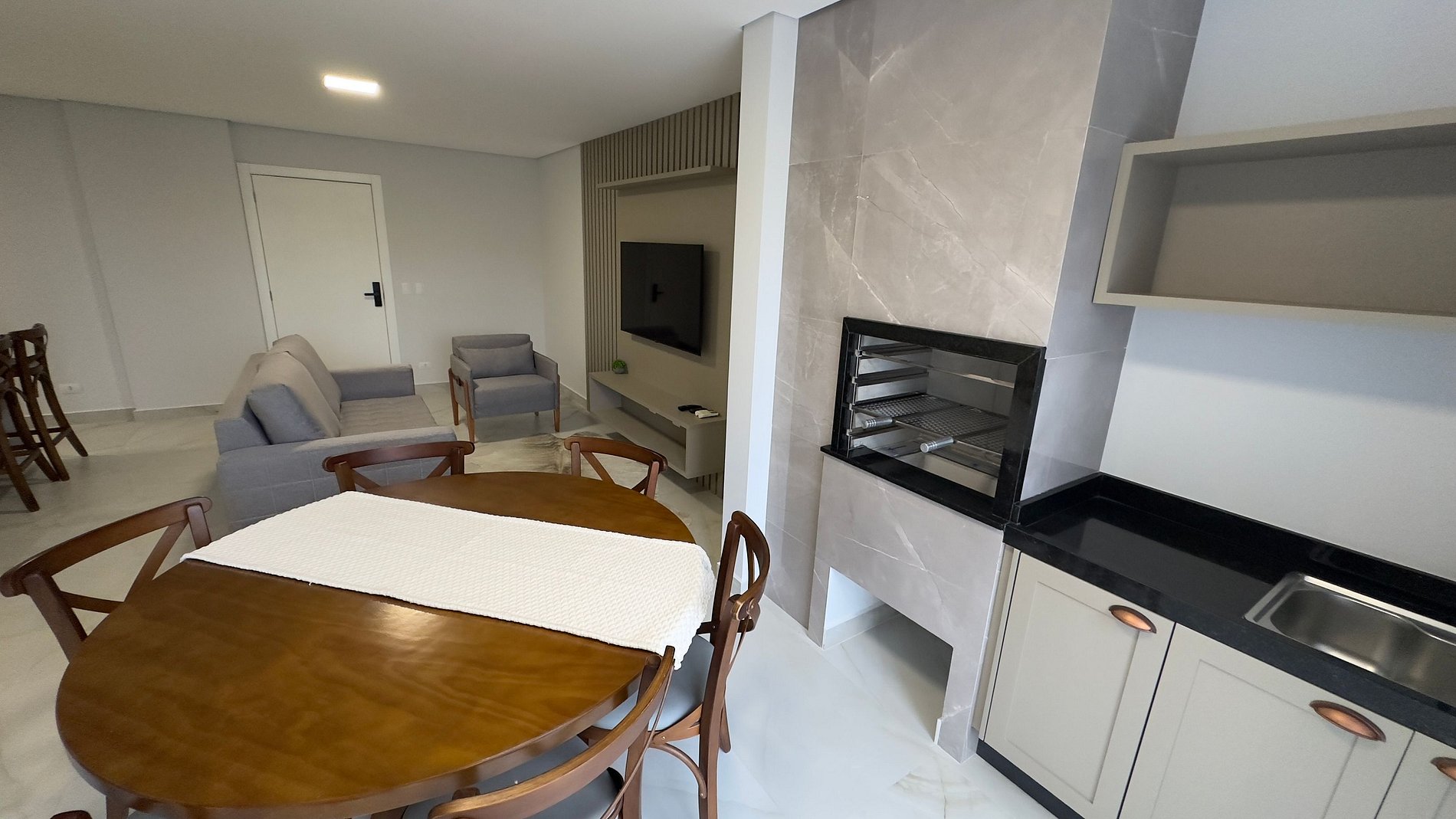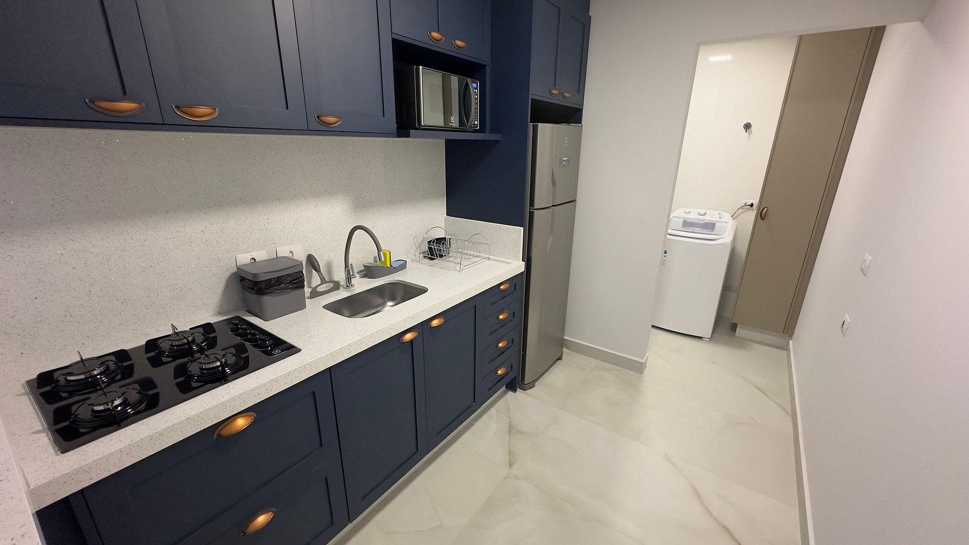 O destaque fica por conta do espaço gourmet com churrasqueira, perfeito para confraternizações e momentos especiais. A cozinha planejada é linda e totalmente equipada com eletrodomésticos, facilitando suas refeições durante a estadia. Além disso, há um espaço de lavanderia com máquina de lavar e tanque para sua conveniência.