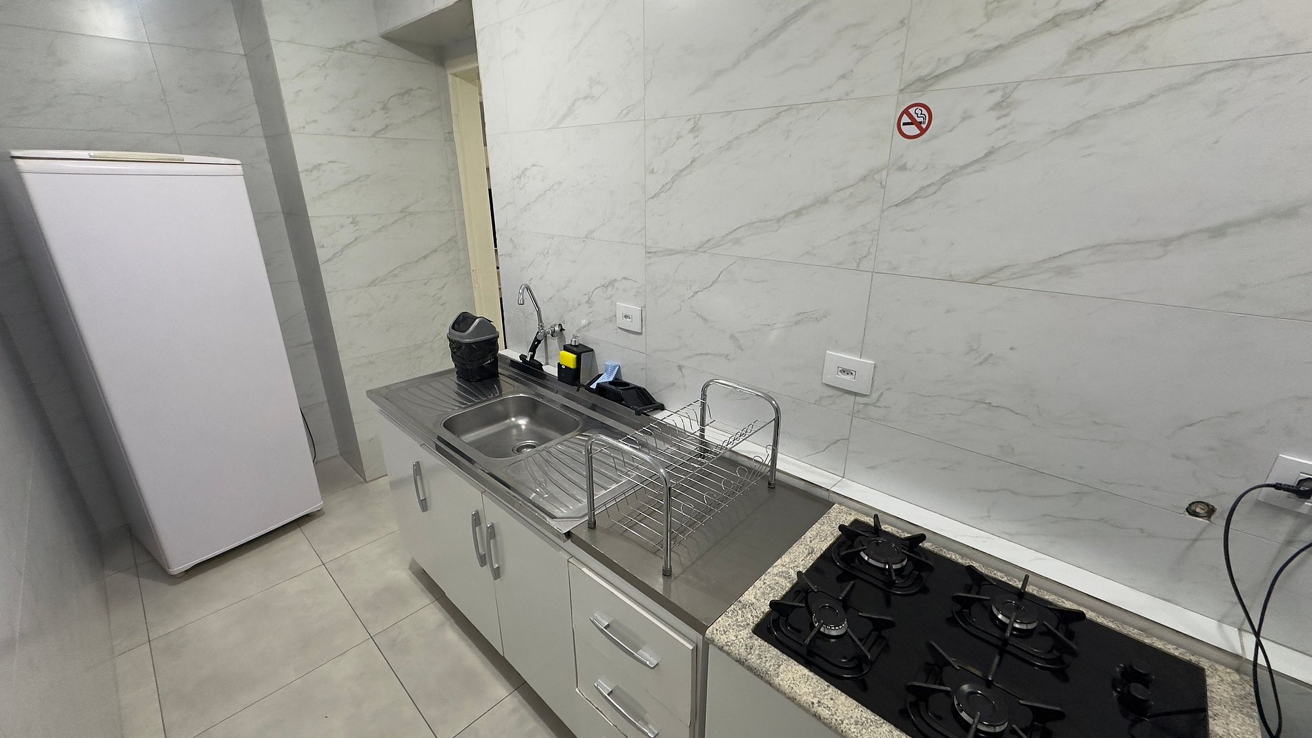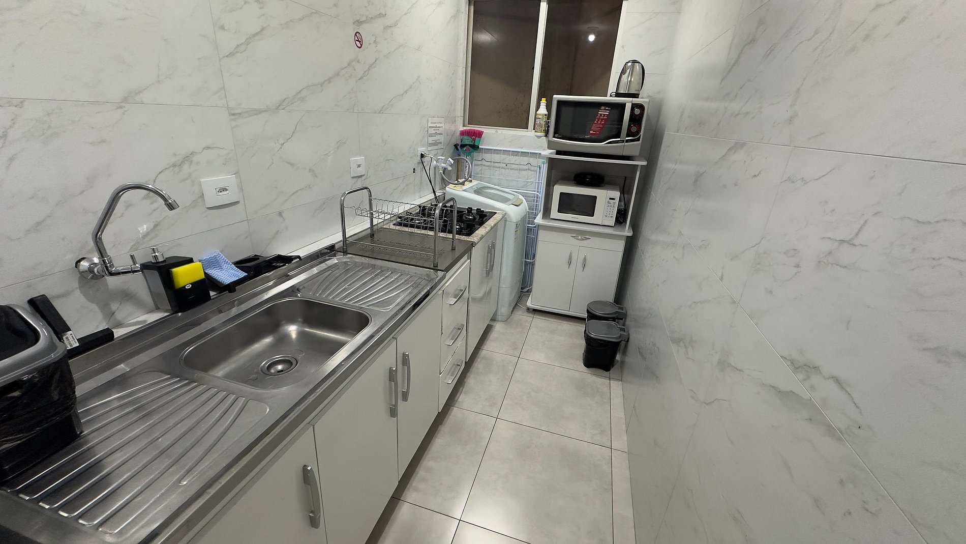 O imóvel não contém máquina de café e sim utensílios para fazer café. Assim também como itens básicos como utensílios e não itens perecíveis como óleo, sol, pimenta e etc.