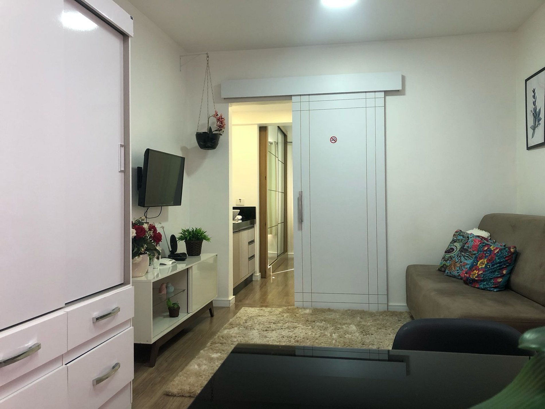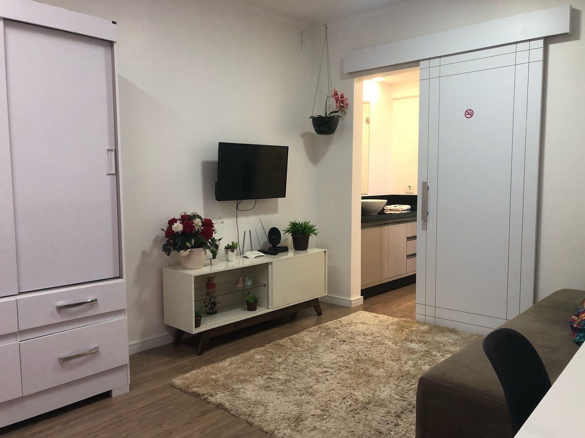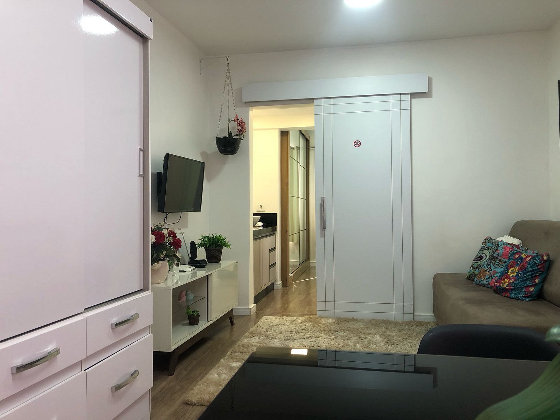 cozinha integrados e 1 quarto privativo. O apto. é muito bem equipado e